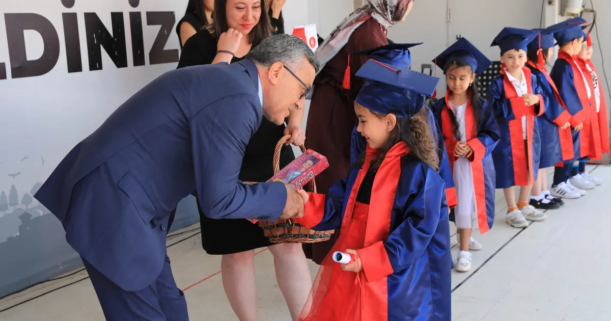 ANKARA (İGFA) – 59 minik öğrenci, eğitim hayatlarının ilk basamağını tamamlayarak keplerini coşkuyla fırlattı. Renkli görüntülere sahne olan mezuniyet törenine katılan aileler, bu özel ana tanıklık ederek mutluluğu ve duygusal anları birlikte yaşadı. Mezuniyet töreninde sihirbazlık gösterisi ve yüz boyama etkinliği gibi eğlenceli aktiviteler eğlenceyi doruğa çıkarırken, çocuklara pamuk şeker ve patlamış mısır ikram edildi. Mezun olan minik öğrencilere hediyeler verildi.