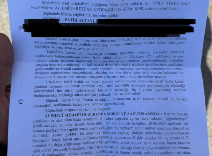 İSTANBUL (İGFA) – Gazeteci Fatih Altaylı, 22 Haziran 2025 tarihinde İstanbul Adliyesi’ne sevk edilmesinin ardından “Cumhurbaşkanına suikast”...
