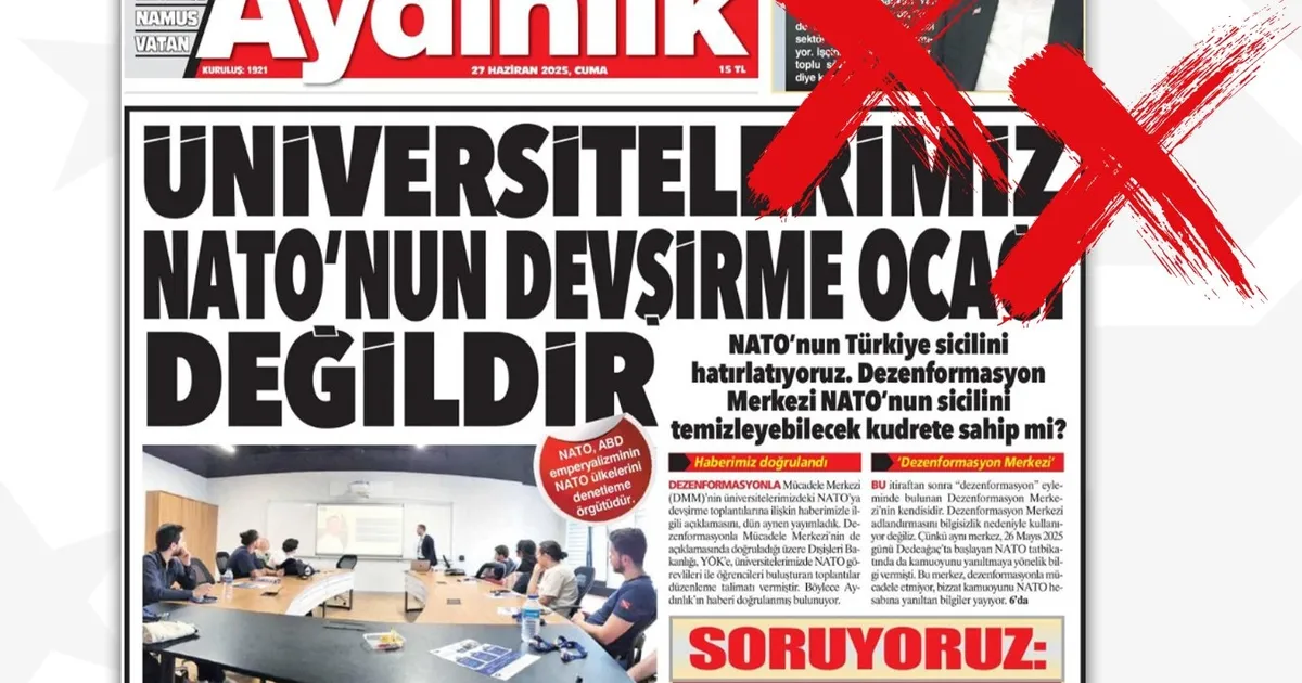 Dezenformasyonla Mücadele Merkezi (DMM) olarak, Aydınlık gazetesinde yayımlanan “NATO karargâhından yönetilen Dezenformasyon Merkezi” başlıklı yazıya ilişkin kamuoyunu bilgilendirme ihtiyacı doğmuştur.
