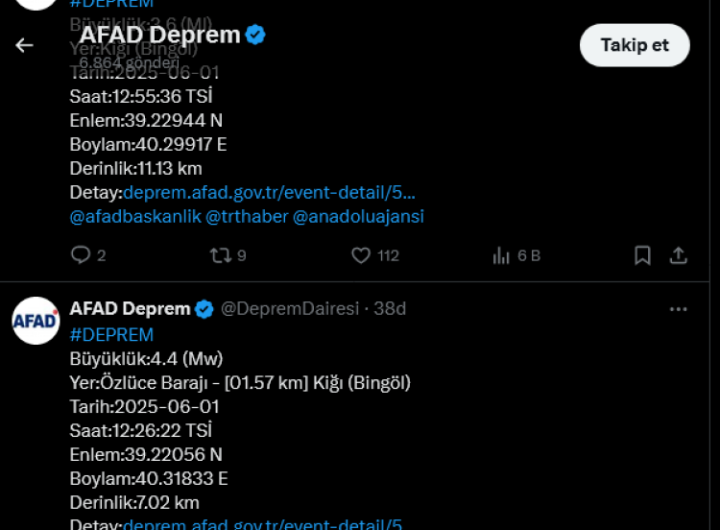 ANKARA (İGFA) – Afet ve Acil Durum Yönetimi Başkanlığı’ndan alınan bilgiye göre, Bingöl’ün merkez üssü Kiğı ilçesinde...