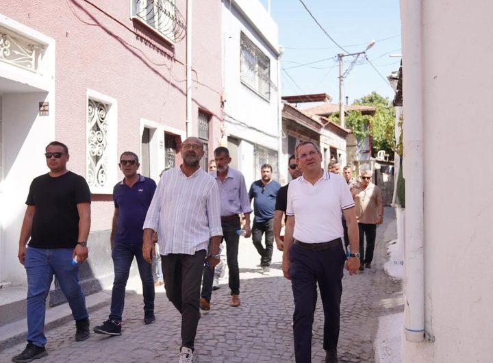 – Ayvalık Belediye Başkanı Mesut Ergin, belediyenin birim müdürleriyle birlikte tarihi kent sokaklarında yapılacak iyileştirme çalışmaları...