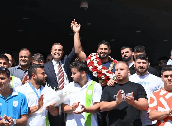 Balıkesir Büyükşehir Belediye Başkanı Ahmet Akın, 673.Tarihi Elmalı Yağlı Güreşlerinde ikinci kez başpehlivanlığı kazanan Büyükşehir Belediyespor güreşçisi...