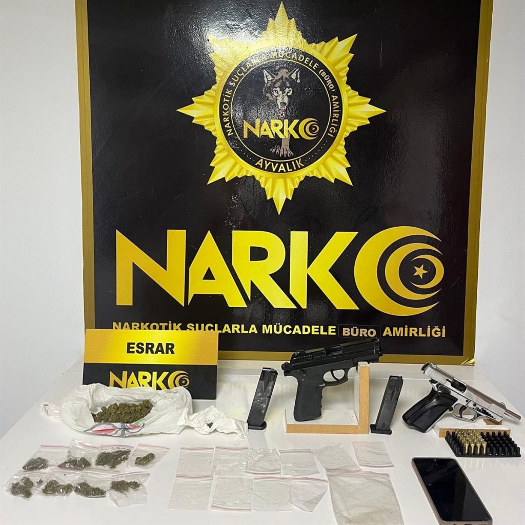 Balıkesir İl Emniyet Müdürlüğü Ayvalık Narkotik Suçlarla Mücadele Büro Amirliği ekiplerinin 7-10 Eylül 2025 tarihleri arasında yaptığı operasyonlarda uyuşturucu madde ve ruhsatsız silahlar ele geçirildi.