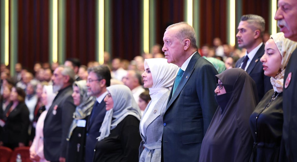 Mukaddes değerler uğruna kanlarını akıtan, böylece gazilikle müşerref olan kahramanlara Allah’tan uzun ve hayırlı ömürler niyaz eden Erdoğan, ahirete irtihal etmiş olanlara rahmet diledi.