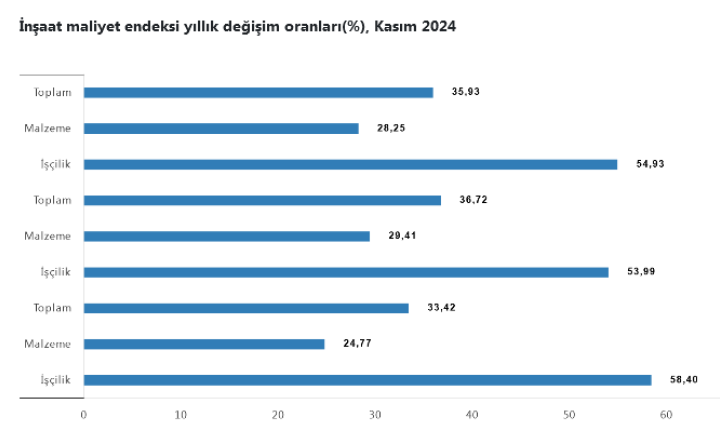 İnşaat maliyet endeksi yıllık yüzde 35,93 arttı, aylık yüzde 0,04 arttı. İnşaat maliyet endeksi verilerine göre yıllık...