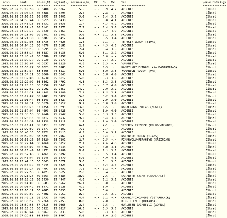Kandilli verilerine göre Akdeniz açıklarındaki son deprem ise 15.10’te 4,2 büyüklüğünde ölçüldü.