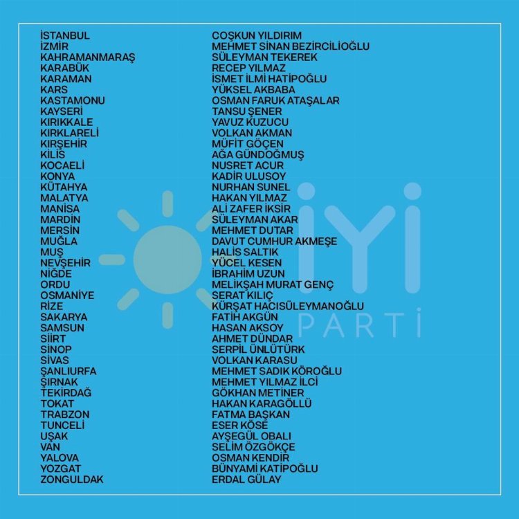 Yayınlanan bildiride, “Yapılacak olan kongrede Türkiye Cumhuriyetinin 81 vilayetinin başkanları olarak, kurucu liderimiz, Genel Başkanımız Sayın Meral Akşener’i; Amasız, Fakatsız, Lakinsiz Genel Başkan adayı olarak önereceğimizi, partimize gönül vermiş milyonlarca yol arkadaşımız ve Yüce Türk milleti önünde beyan etmeyi bir görev addediyoruz” denildi.