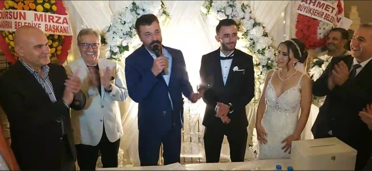 Erdek Oteli’nde gerçekleşen görkemli düğünde, Burcu-Ali Osman çiftinin nikahını Bandırma Belediye Başkanı Dursun Mirza kıyarken, nikah şahitliklerini İYİ Parti TBMM Grup Başkanvekili Balıkesir Milletvekili Turhan Çömez, CHP Yurt Dışı Örgütlerden Sorumlu PM Üyesi, 25 ve 26. Dönem Balıkesir Milletvekili Mehmet Tüm, Erdek önceki dönem Belediye Başkanı Hüseyin Sarı, İnternet Gazetecileri Federasyonu Genel Başkanı Mesut Demir, Küresel Gazeteciler Konseyi Genel Başkanı Mehmet Ali Dim, TİMEF Genel Başkanı Şakir Gürel, Balıkesir Gazeteciler Cemiyeti Başkanı Ramazan Demir, Bandırma Ticaret Odası Başkanı Adem Yılmaz, AK Parti Bandırma İlçe Başkanı Mehmet Doğan, İyi Parti Bandırma İlçe Başkanı Levent Köse ve Savaş Kapıcı yaptı.