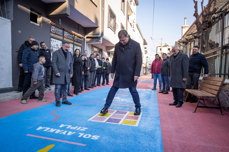 Düzenlemeleri yerinde inceleyen Başkan Tugay, Yunus Emre Mahallesi sakinleri ve öğrenci velileriyle sohbet etti. Mahalle sakinleri düzenlemeden dolayı Başkan Tugay’a teşekkür ederek sokakların birlikte yaşatılması için projeye destek verdi. Başkan Tugay, bölgede halkının taleplerini dinleyerek yeni iyileştirmeler için talimat verdi. Saha incelemesinde Başkan Tugay, okul yanında oluşturulan oyun sokağında miniklerle sohbet etti; birlikte oyun oynadı.