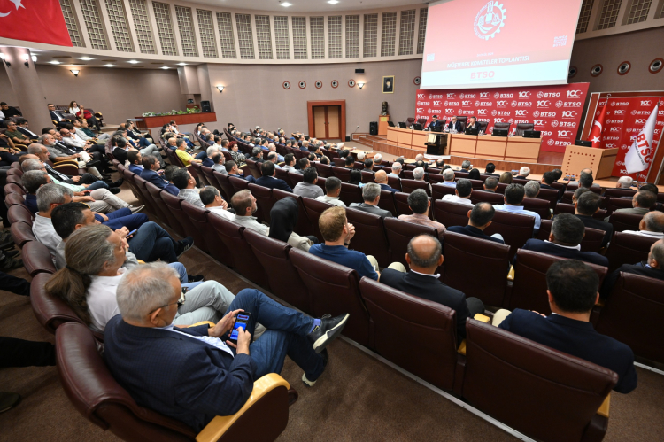 BURSA (İGFA) – Bursa Ticaret ve Sanayi Odası (BTSO) Müşterek Meslek Komiteleri ve Eylül Ayı Meclis Toplantısı Oda Hizmet Binası’nda gerçekleştirildi. BTSO çatısı altındaki 70 meslek komitesini bir araya getiren toplantıda konuşan BTSO Yönetim Kurulu Başkanı İbrahim Burkay, sıkılaşmaya dayalı dezenflasyon hedefli ekonomi programının etkilerinin tüm sektörler üzerinde yoğun bir şekilde hissedildiği bir süreçten geçtiklerini söyledi. Oda olarak sektörlerin sorunlarına çözüm üretmek, firmaların zorlu süreci en az hasarla atlatmalarını sağlamak amacıyla çalışmalarını sürdürdüklerini belirten Başkan Burkay, “Bu çalışmaları, her bir sektörümüzün sorunlarını en iyi bilen komitelerimizle, konseylerimizle ve meclis üyelerimizle birlikte gerçekleştiriyoruz. Komitelerimiz sadece iş dünyasına karşı değil, aynı zamanda yaşadığımız topluma karşı da büyük bir sorumluluk taşıyor. Sizler, bu sorumluluğu omuzlarınızda taşıyıp, el birliğiyle daha iyi günler için mücadele ediyorsunuz. Sektörümüzün nabzını tutuyor, firmalarımızın taleplerini Odamız çatısı altında en iyi şekilde dile getiriyorsunuz. Gayretleriniz, emekleriniz ve fedakârlıklarınız için her birinize ayrı ayrı teşekkür ediyorum.” ifadelerini kullandı.