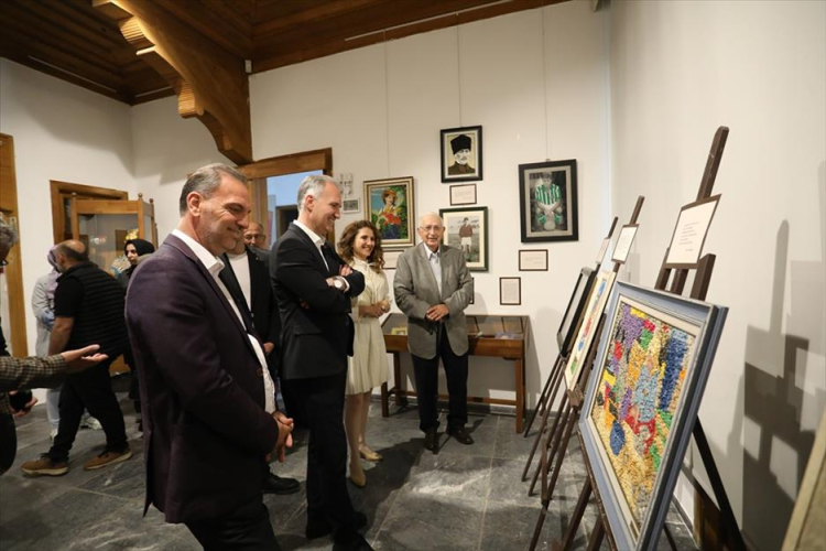 Konuşmalar sonrasında kurdele kesimiyle açılan “Taşın Kalbi” sergisi, 150 eseriyle sanatseverlerin beğenisine sunuldu.