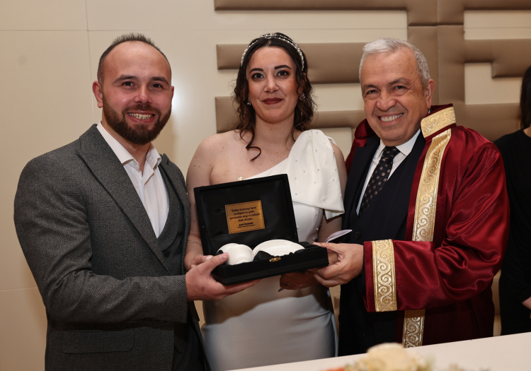 Evlilik cüzdanlarını çiftlere teslim eden Başkan Şadi Özdemir, günün anısına fincan takımı hediye etti. Ayşe Can ile Engin Geyik çiftinin nikahlarına Büyükşehir Belediyesi Başkanvekili Mehmet Aydın Saldız da katılarak çiftlerin mutluluğuna ortak oldu.