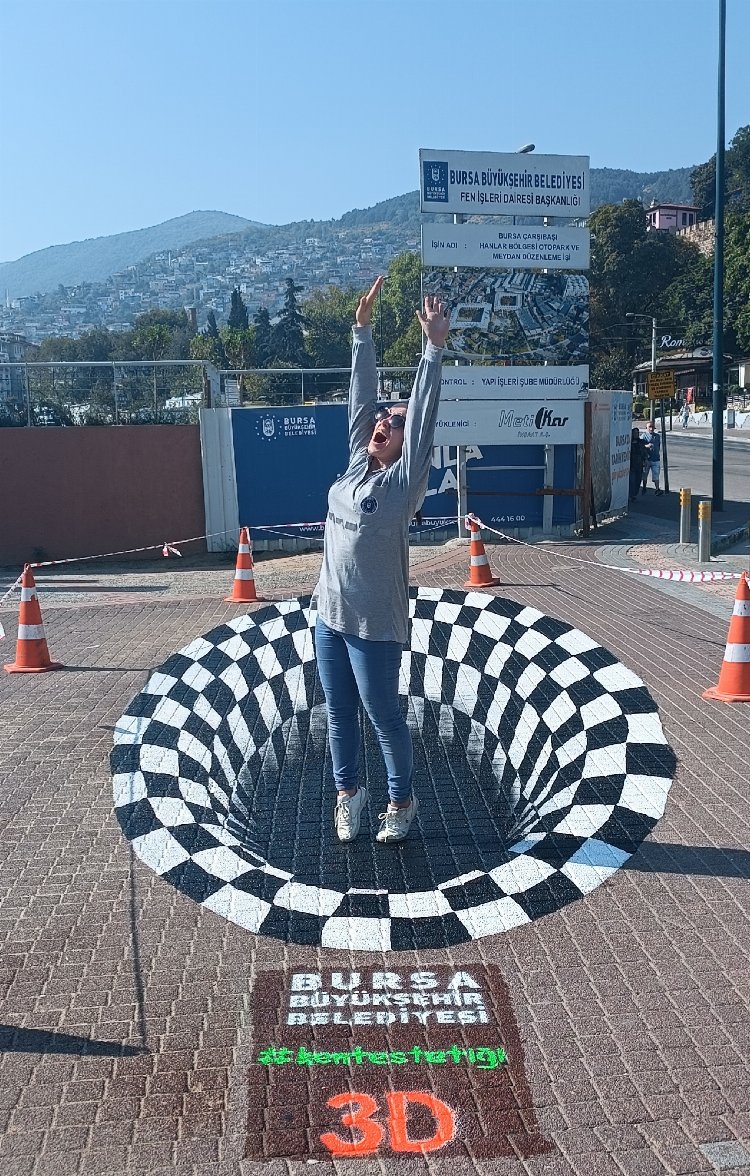 Trafo binaları, istinat duvarları ve köprülü kavşakları tuval gibi kullanıp, cadde ve sokakları sanatla buluşturan Kent Estetiği Şube Müdürlüğü’nün alanında ressamları, Bursa’yı 3 boyutlu sanatla buluşturmaya devam ediyor. Türkiye’de pek yaygın olmayan Avrupa’daki örneklerinde ise daha çok tebeşir gibi geçici boyalarla yapılan 3D uygulamalar, uzun süre etkileşimin sağlanabilmesi amacıyla Bursa’da dayanıklı özel boyalarla yapılıyor. 3D sokak boyama sanatı çalışmaları belli bir açıdan bakıldığında vatandaşlarda şaşkınlığa yol açıyor.