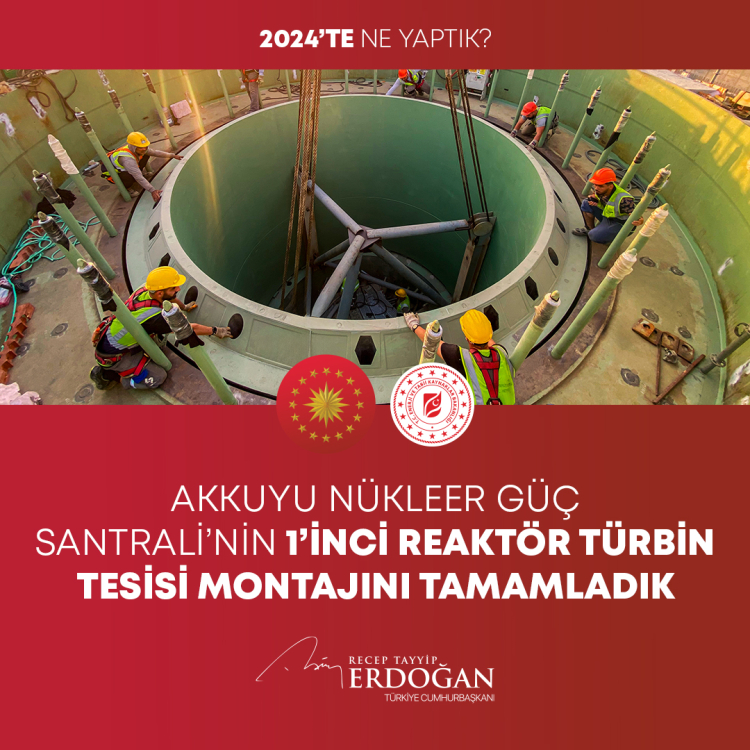 Akkuyu Nükleer Güç Santralimizin 1’inci reaktör türbin tesisi montajını tamamladık. Türkiye’yi dünyanın nükleer güç sahibi ülkeleri arasına sokmakta kararlıyız.