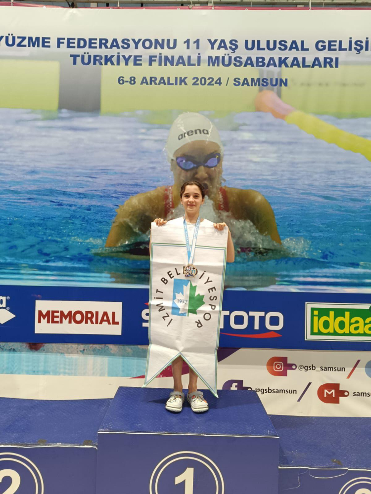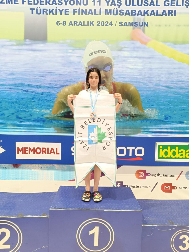 KOCAELİ (İGFA) – İzmit Belediyespor, Türkiye Yüzme Federasyonunun düzenlediği 11 Yaş Ulusal Gelişim Projesi Ligi final müsabakalarına katıldı. Samsun’da yapılan müsabakalarda İzmit Belediyesi adına Beril Zeyrek, Zeynep Simay Dalkılıç ve Ayşe Melek Vatansever yarıştı. 3 sporcu toplamda, 7 altın ve 2 gümüş madalya kazandı.