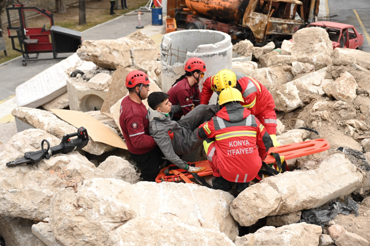 Eğitim programının sonunda Konya Büyükşehir Belediyesi İtfaiye Eğitim Merkezi’nde (KİTEM) katılımcıların öğrendiklerini sahada uygulama fırsatı bulduğu geniş kapsamlı bir tatbikat yapıldı.