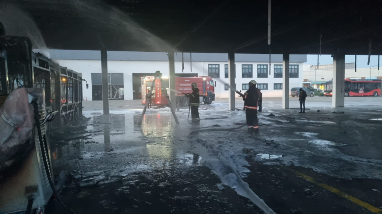 Bu sırada istasyonda bulunan diğer otobüsler yangının sıçrama riskine karşı güvenli bölgelere çekildi.