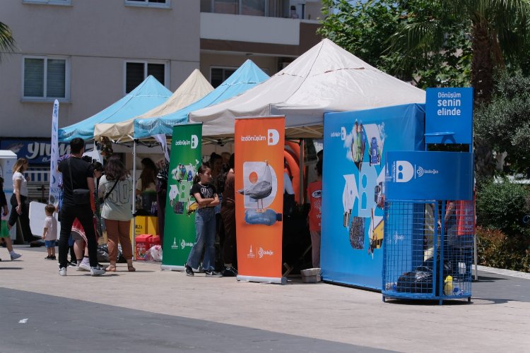 İZ Doğa, TEMA Vakfı Narlıdere Temsilciliği ve İZ YAŞAM Kooperatifi’nin de stant açtığı etkinlikte, Kılıçaslan Ortaokulu öğrencilerinin hazırladığı geri dönüşüm defilesini büyük ilgi gördü. Geri dönüşüm malzemelerden hazırladıkları kıyafetlerle sahneye çıkan çocuklar, ‘Atıkları geri dönüştürelim, doğamıza hep birlikte sahip çıkalım’ çağrısı yaptı.