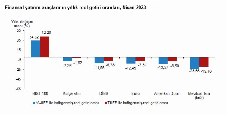 Finansal yatırım araçları yıllık olarak değerlendirildiğinde BIST 100 endeksi; Yİ-ÜFE ile indirgendiğinde %34,32, TÜFE ile indirgendiğinde ise %42,20 oranlarında yatırımcısına en yüksek reel getiri sağlayan yatırım aracı oldu.