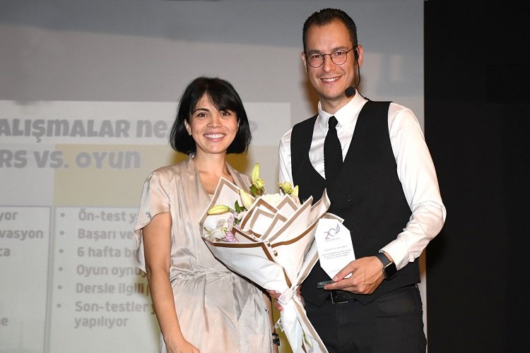 Şahinkaya Eğitim Kurumları öğretmenlerinin katılım sağladığı seminer programının sonunda Şahinkaya Eğitim Kurumları Yönetim Kurulu Başkan Vekili Dilay Şahinkaya, Doç. Dr. Yavuz Samur’a plaket takdim ederek teşekkür etti.