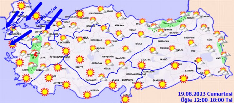 Rüzgarın Marmara’da kuzeydoğu yönlerden kuvvetli (40-60 km/saat) esmesi bekleniyor. Rüzgar, genellikle kuzeyli, yurdun güney ve doğu kesimlerinde güneyli yönlerden hafif, ara sıra orta kuvvette esecek.