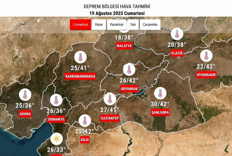 Öte yandan deprem bölgelerinde günlük hava durumu ise şöyle: