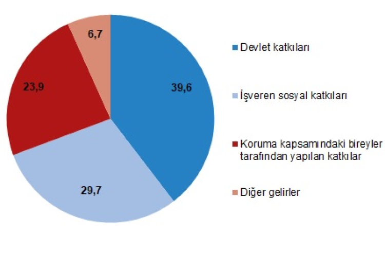 Sosyal koruma gelirlerinin yüzde 39,6’sını devlet katkıları, yüzde 29,7’sini işveren sosyal katkıları ve yüzde 23,9’unu koruma kapsamındaki bireyler tarafından yapılan sosyal katkılar oluşturdu. Sosyal koruma kapsamında maaş alan kişi sayısı 16 milyon 893 bin kişi oldu.