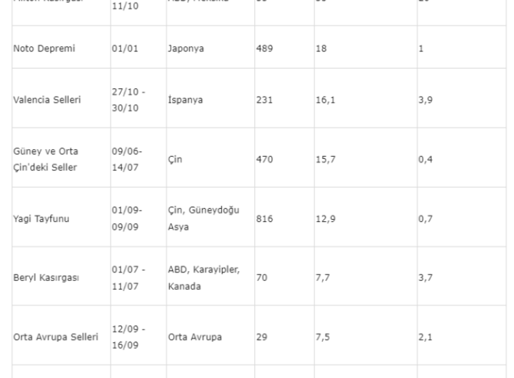 2024 yılında doğal afetlerden kaynaklanan küresel ekonomik kayıplar 368 milyar dolar oldu. Geçen yılın Eylül ayında ABD...