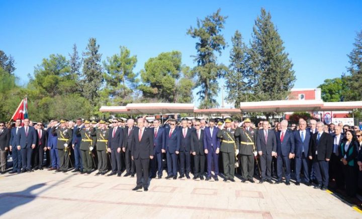 Kuzey Kıbrıs Türk Cumhuriyeti (KKTC) Cumhurbaşkanı Ersin Tatar, KKTC’nin kuruluş yıldönümü dolayısıyla Girne Kapısı’ndaki Atatürk Anıtı önünde...
