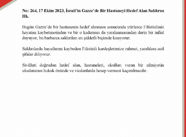 Cumhurbaşkanı Recep Tayyip Erdoğan, İsrail’in Gazze’de hastane bombalamasına dair sosyal medya hesabından yaptığı paylaşımla Gazze’de yaşanan ve...