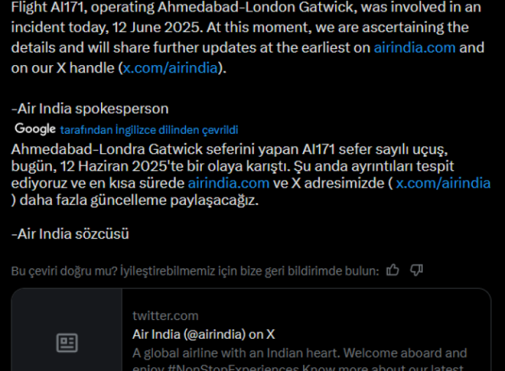 Hindustan Times / ANKARA (İGFA) – Hindustan Times’da yer alan habere göre Hindistan’ın Gujarat eyaletindeki Ahmedabad Havalimanı’nda,...
