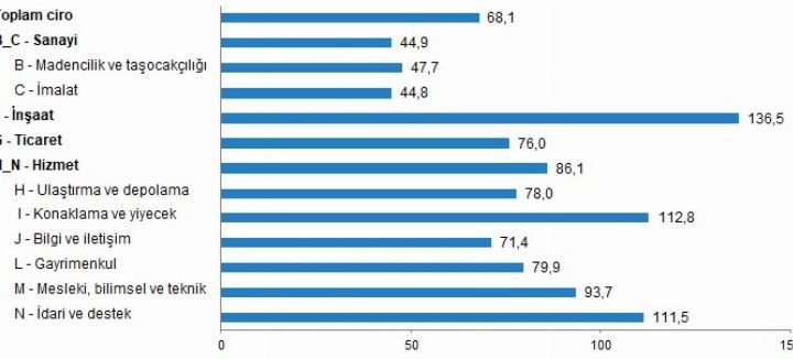 TÜİK, KDV Beyannameleri’nden elde edilen verilerle oluşturulan Ciro Endeksleri açıklandı. Toplam ciro yıllık yüzde 68,1 artarken, aylık...