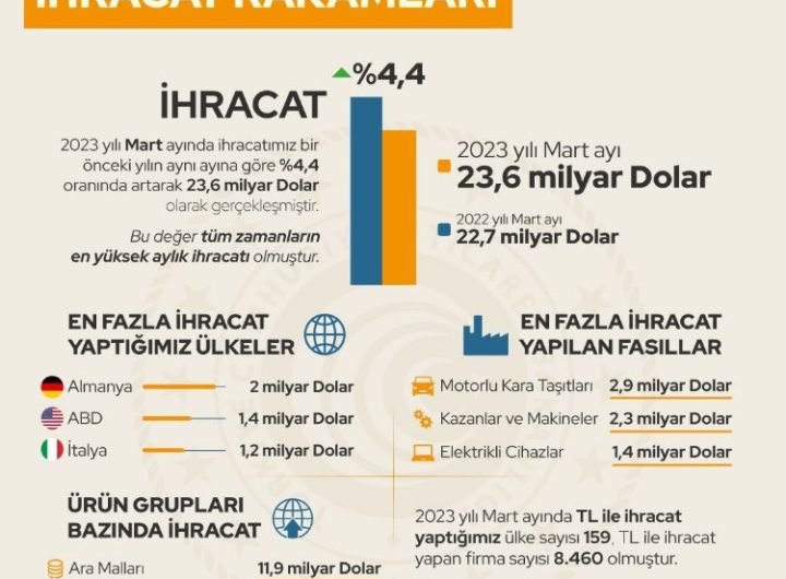 Ticaret Bakanı Dr. Mehmet Muş, Mart ayında ihracatın yüzde 4,4 artışla 23,6 milyar Dolar seviyesinde gerçekleştiğini duyurarak,...