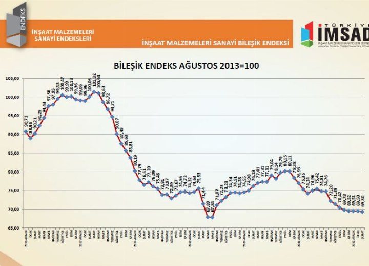 İnşaat malzemeleri sanayisinin çatı kuruluşu Türkiye İMSAD’ın raporuna göre; İnşaat Malzemeleri Sanayi Bileşik Endeksi, şubat ayında 69,30...