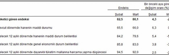 TÜİK ve Merkez Bankası işbirliği ile yürütülen Tüketici Eğilim Anketi sonuçlarından hesaplanan Tüketici Güven Endeksi, Mart ayında...