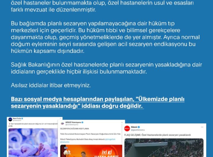 ANKARA (İGFA) – Ülkemizde planlı sezaryenin yasaklandığı iddiasına ilişkin açıklama İletişim Başkanlığı’ndan geldi. Dezenformasyonla Mücadele Merkezi’nden yapılan...