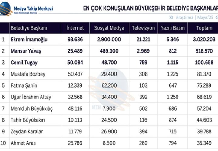 BURSA (İGFA) – MTM Medya Takip Merkezi tarafından 01-31 Mayıs 2025 tarihleri arasında internet, sosyal medya, televizyon...