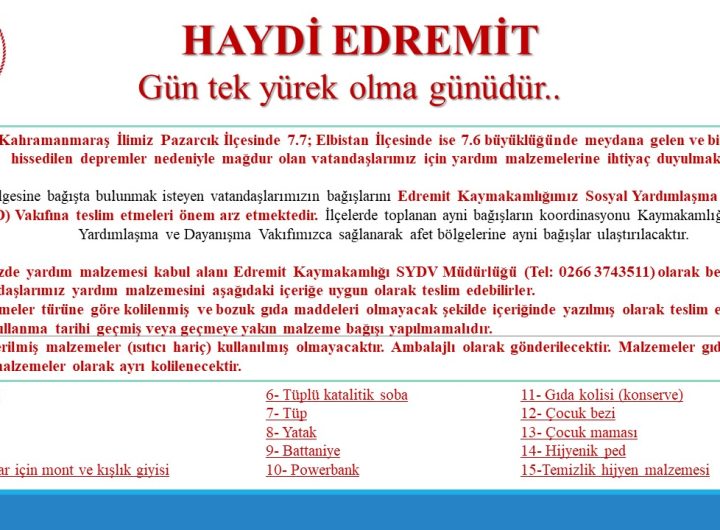 Burhaniye Belediyesi, Kahramanmaraş’ın Pazarcık İlçesi’nde meydana gelen 7.4’lük deprem sonrası bölgeye ulaştırılmak üzere yardım kampanyası başlattı. Vatandaşlar...