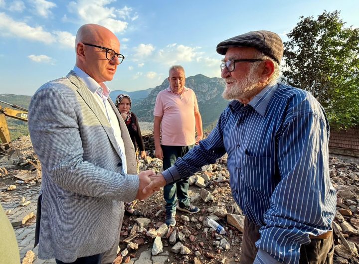 Balıkesir Büyükşehir Belediye Başkanı Ahmet Akın, Sındırgı’da meydana gelen 6.1 büyüklüğündeki deprem sonrası yıkılan binaların olduğu...