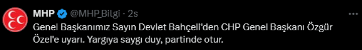 ANKARA (İGFA) – MHP Genel Başkanı Devlet Bahçeli’nin CHP Genel Başkanı Özgür Özel’e uyarısı MHP’nin sosyal medya...