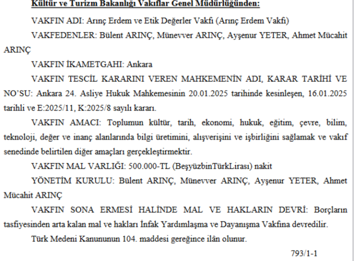 TBMM eski başkanı Bülent Arınç ailesiyle birlikte ‘Etik Değerler Vakfı’nın kuruluşunu gerçekleştirdi. ANKARA (İGFA) – TBMM Eski...