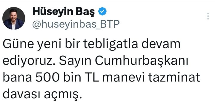 Bağımsız Türkiye Partisi (BTP) Genel Başkanı Hüseyin Baş, AK Parti Genel Başkanı ve Cumhurbaşkanı Recep Tayyip Erdoğan’ın...