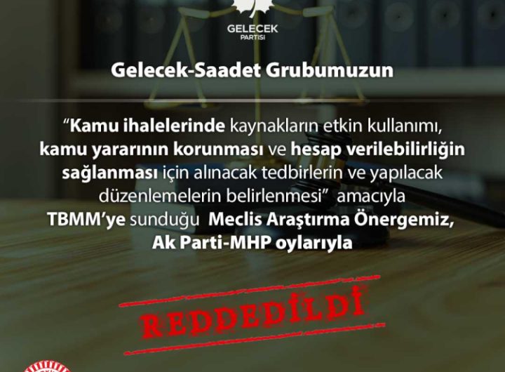 Saadet-Gelecek Grubu’nun kamu ihalelerinde kaynakların etkin kullanımı, kamu yararının korunması ve hesap verilebilirliğin sağlanması amacıyla önerdiği Meclis...