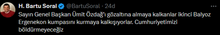 “Cumhurbaşkanına hakaret” suçlamasıyla hakkında soruşturma başlatılan Zafer Partisi Genel Başkanı Ümit Özdağ gözaltına alındı. Genel Başkan Yardımcısı...