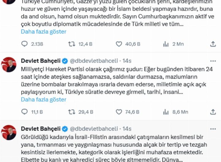 MHP Genel Başkanı Devlet Bahçeli, “24 saat içinde ateşkes sağlanamaz, saldırılar durmazsa, Türkiye süratle devreye girmeli, tarihi,...