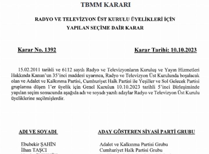 Türkiye Büyük Millet Meclisi Genel Kurulu’nda RTÜK üyelikleri için seçim yapıldı. Gizli oylamada Ebubekir Şahin, İlhan Taşçı...