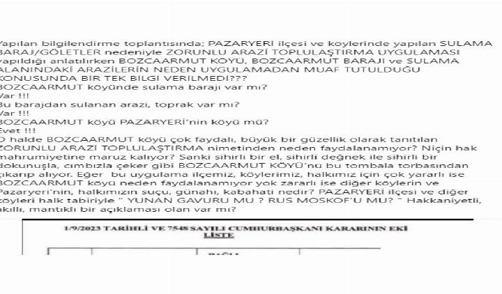 Devlet Su İşleri (DSİ)’nin Bilecik’in Pazaryeri ilçesinde toplulaştırma çalışması 2 Eylül tarihli Resmi Gazete’de yayımlanırken, karara ilçedeki...