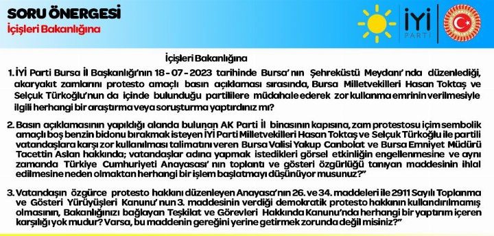 İYİ Parti Bursa Milletvekili Selçuk Türkoğlu, akaryakıta getirilen dev zamma ilişkin yaptığı açıklamada, “Meclis kürsüsünden bu iktidar...