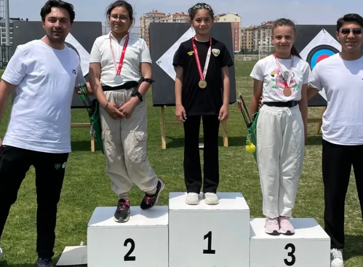 KONYA (İGFA) – Türkiye Okçuluk Federasyonu (TOF) Konya İl Temsilciliği tarafından düzenlenen Konya Bölge Şampiyonası’nda yarışan Meramlı...