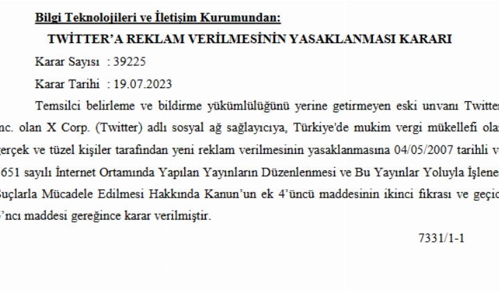 Bilgi Teknolojileri ve İletişim Kurumu (BTK) sosyal medya platformu Twitter’a reklam verilmesini yasakladı. ANKARA (İGFA) – Reklam...